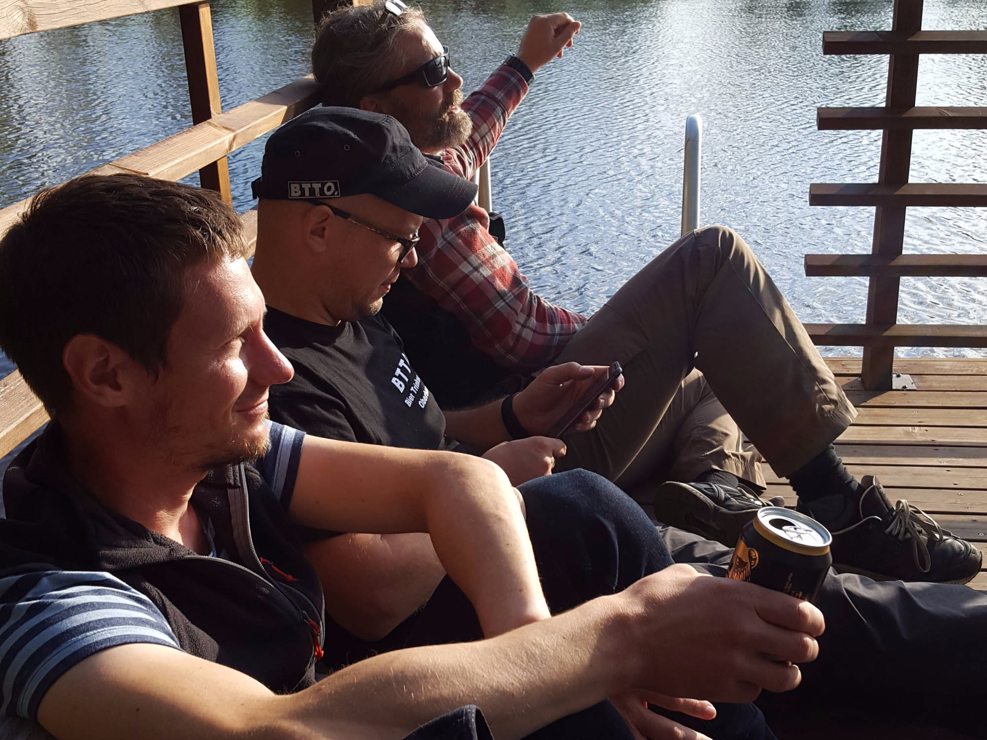 Jetzt gilt es nur noch die wackeligen Knochen aus dem Boot zu hiefen und gemeinsam mit einem ersten kühlen Karhu auf die Strapazen anzustoßen.
